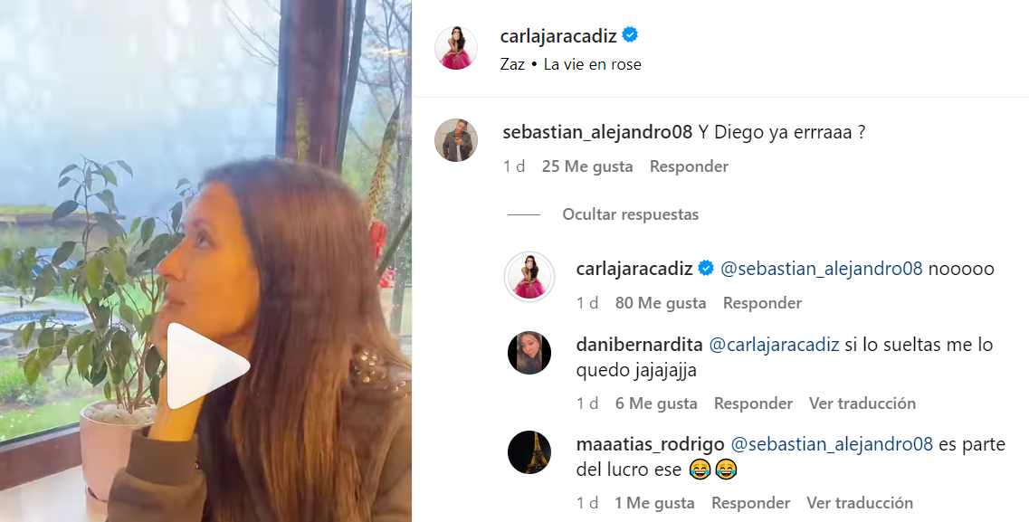 Un usuario preguntó directamente "¿y Diego ya era?", a lo que Carla contestó con un tajante "noooo".
