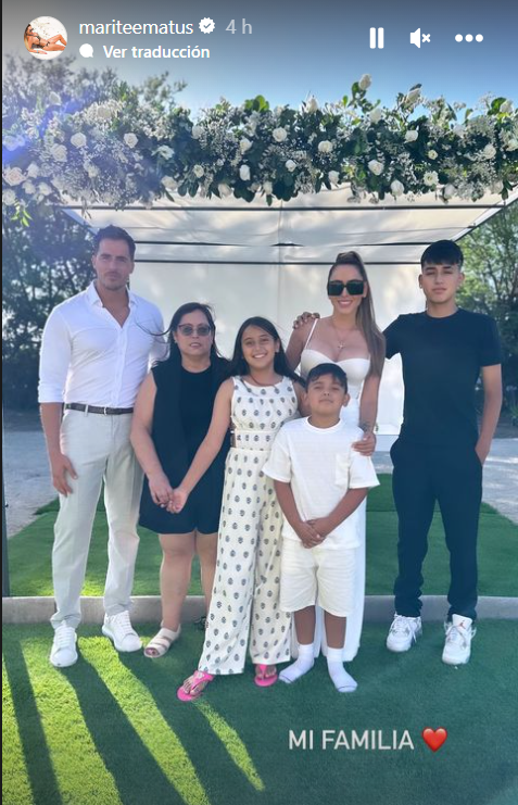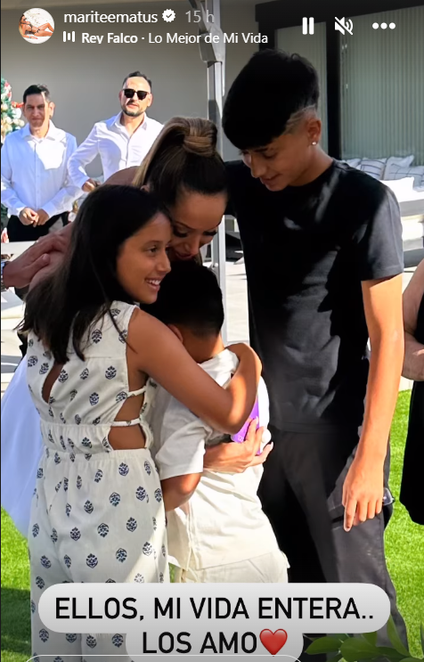 "Mi nueva familia", sumado a un registro de ella junto a los tres hijos que tuvo con el futbolista