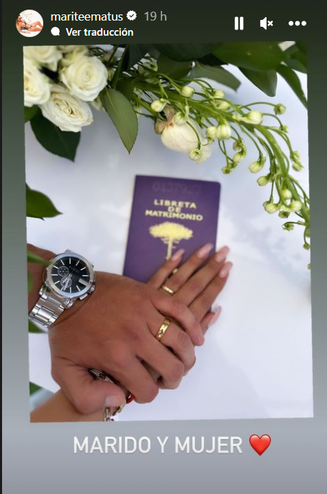 En la imagen aparecen ambos besándose y mostrando su libreta de matrimonio y