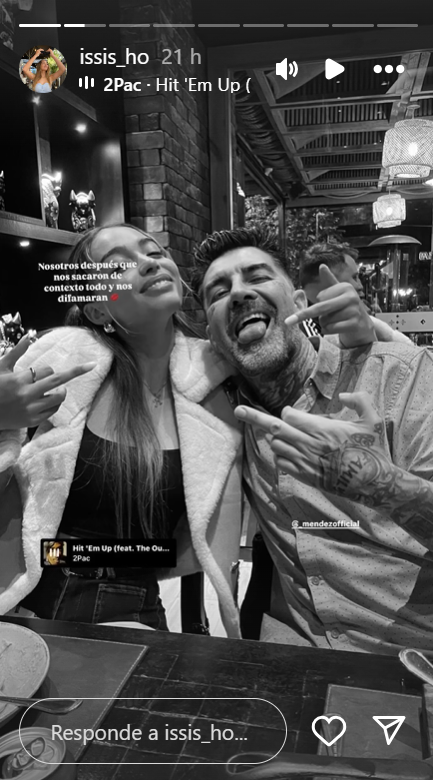 "Cuando te conviene le vuelves a hablar y cuando te conviene te sacan de contexto", escribió junto a un emoji riéndose. La publicación fue eliminada a los minutos después.