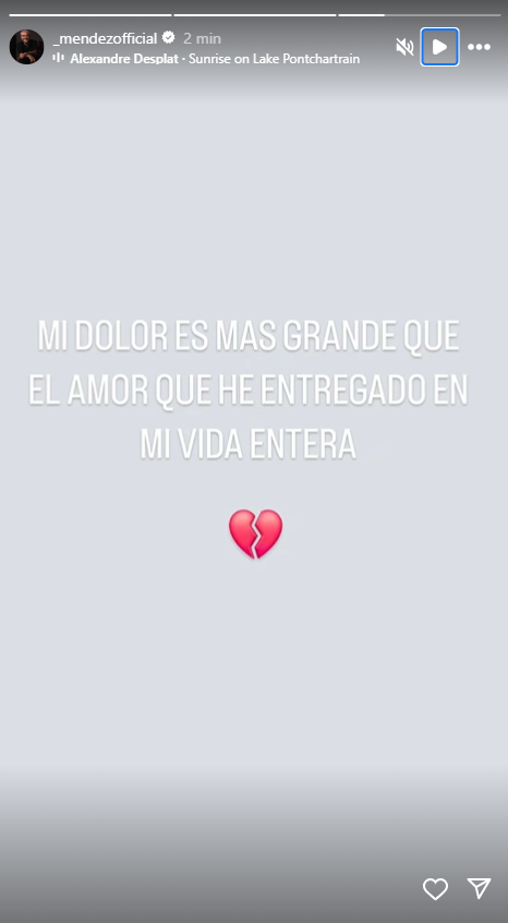 "Mi dolor es más grande que el amor que me entregado en mi vida entera", escribió el intérprete de Lady en sus stories junto a un corazón partido.