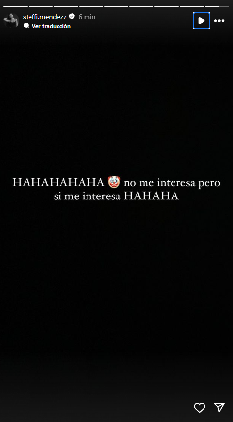 "Hahaha (sic), no me interesa, pero sí me interesa, hahaha (sic)", escribió Steffi en sus stories junto a emojis de payaso.
