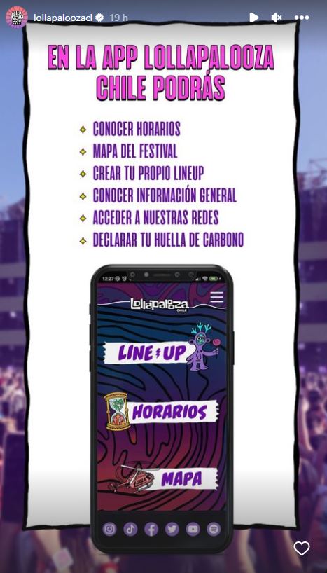 aplicación oficial de Lollapalooza, que está disponible para IOS y Android.