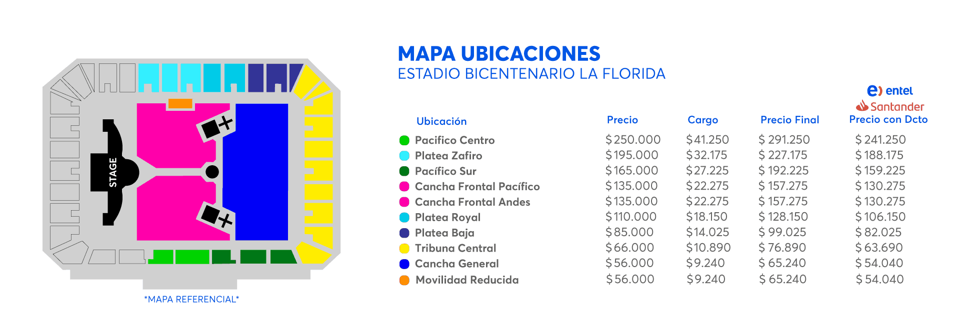 - Cancha Frontal Pacífico: $157.275