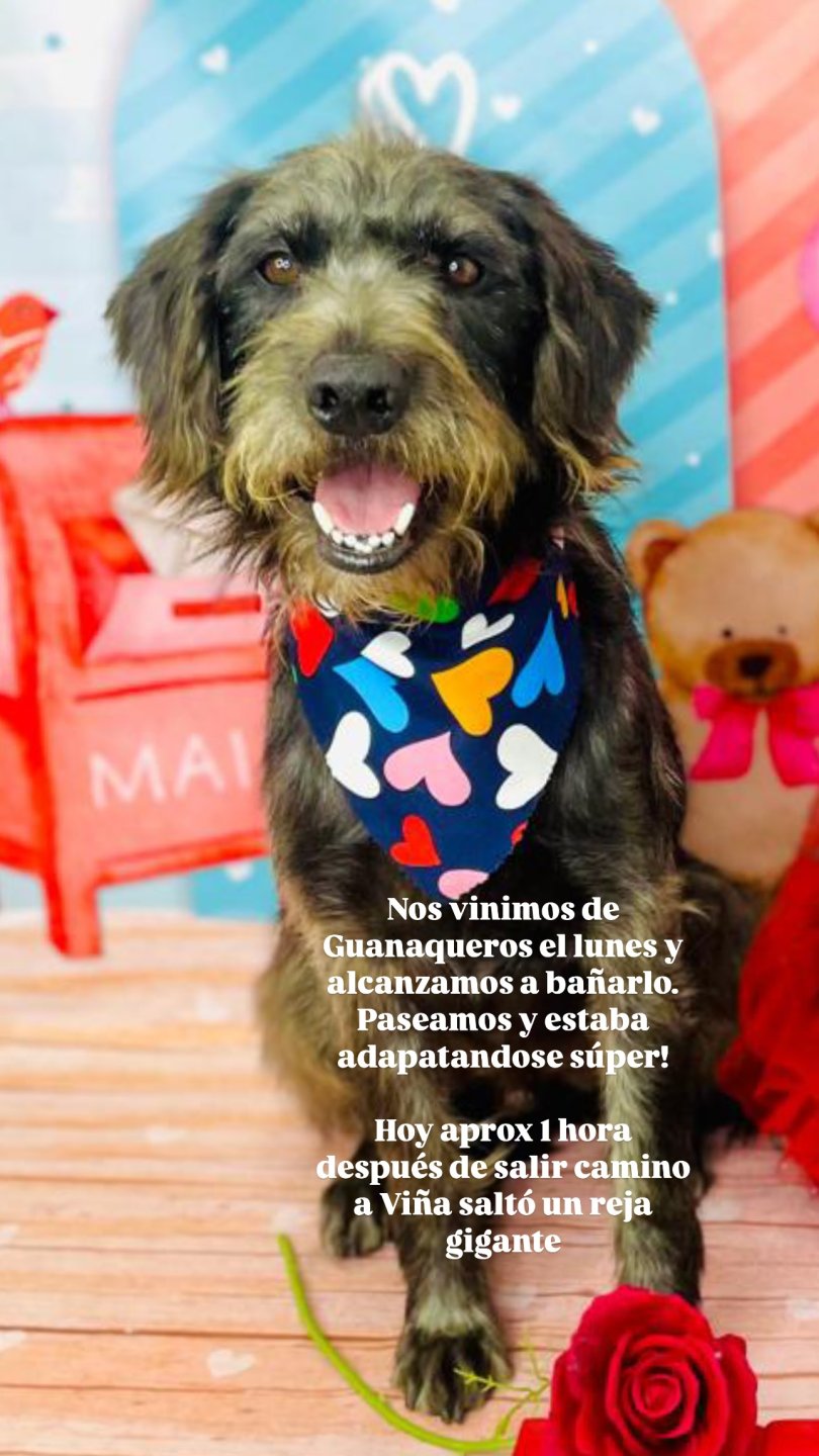 "Nos vinimos de Guanaqueros el lunes y alcanzamos a bañarlo. Paseamos y estaba adaptándose súper. Hoy aprox 1 hora después de salir camino a Viña saltó una reja gigante", dijo durante la noche de este jueves.