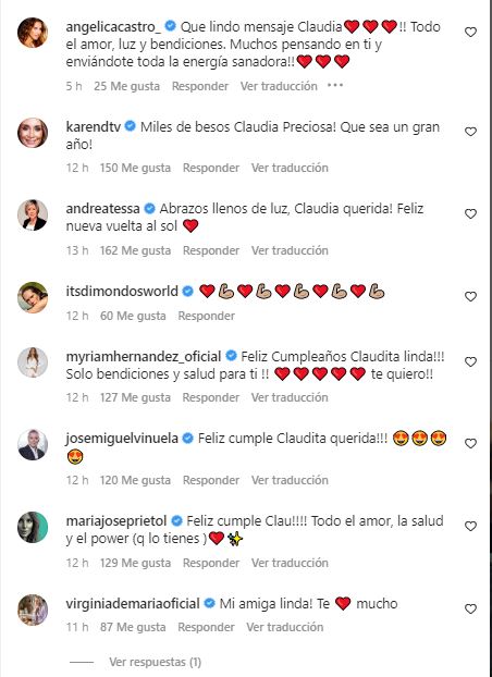 publicación se llenó de mensajes de cariño y apoyo por parte de sus conocidos, entre quienes destacan varias personas del espectáculo nacional.