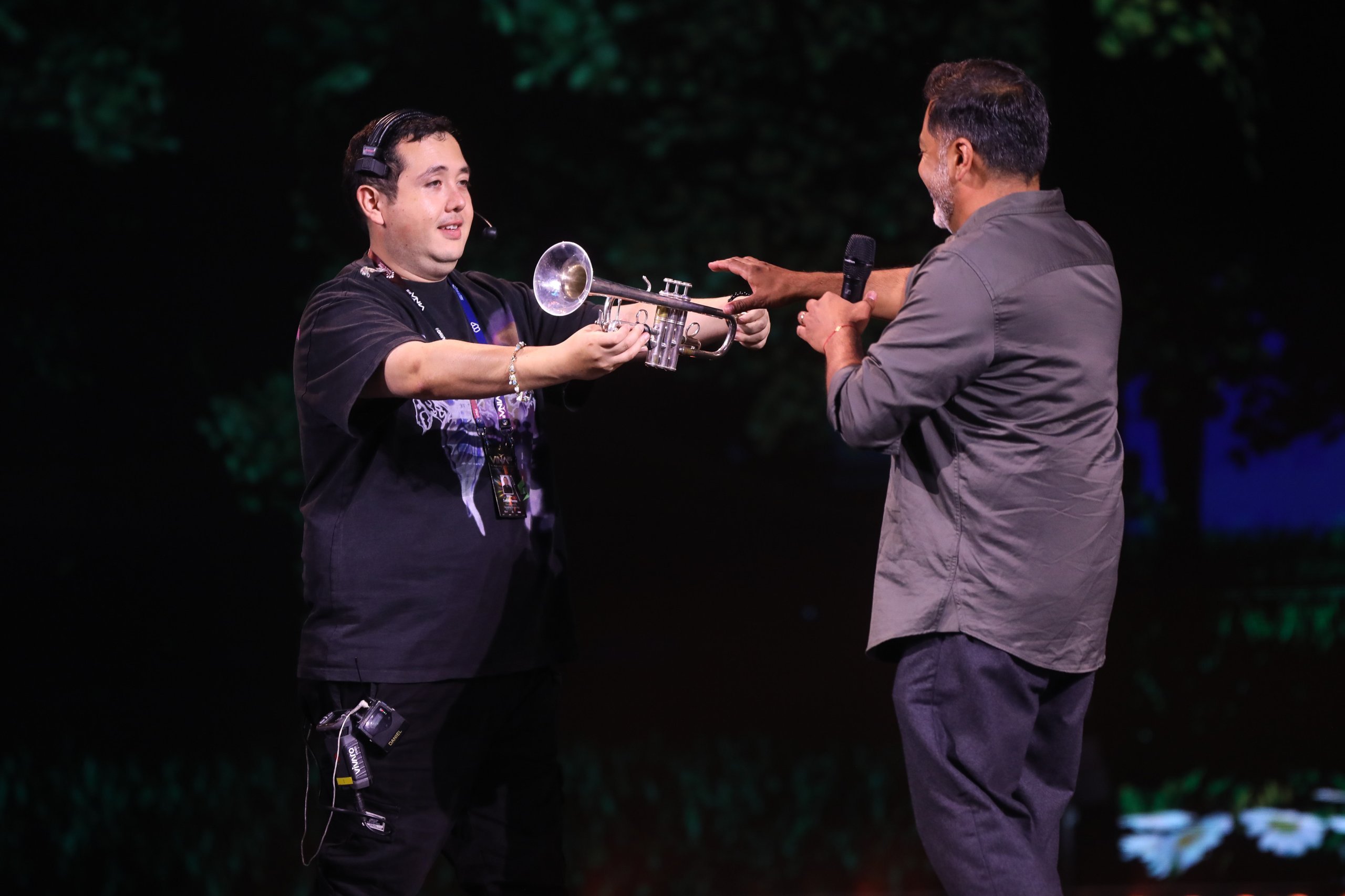 No obstante, este obsequió debió ser devuelto detrás del escenario, ya que la trompeta pertenecía al músico Hermes Quintanilla, miembro de la orquesta del festival, y es de alto valor sentimental para el músico.