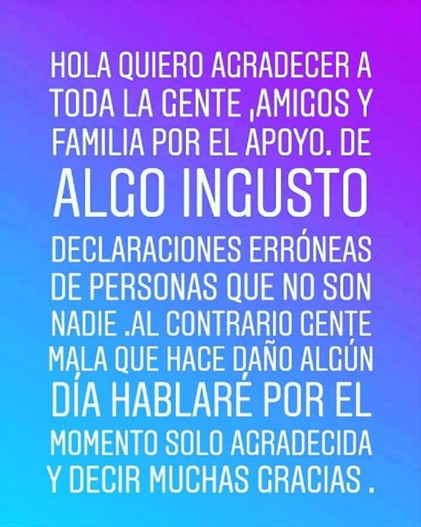 A tres días de revelarse esta decisión, Rosemarie decidió utilizar sus redes sociales para desahogarse por esta situación. Mediante sus stories de Instagram indicó que fue algo injusto, que hubo “declaraciones erróneas de personas que no son nadie” y que “hay gente mala que hace daño”.