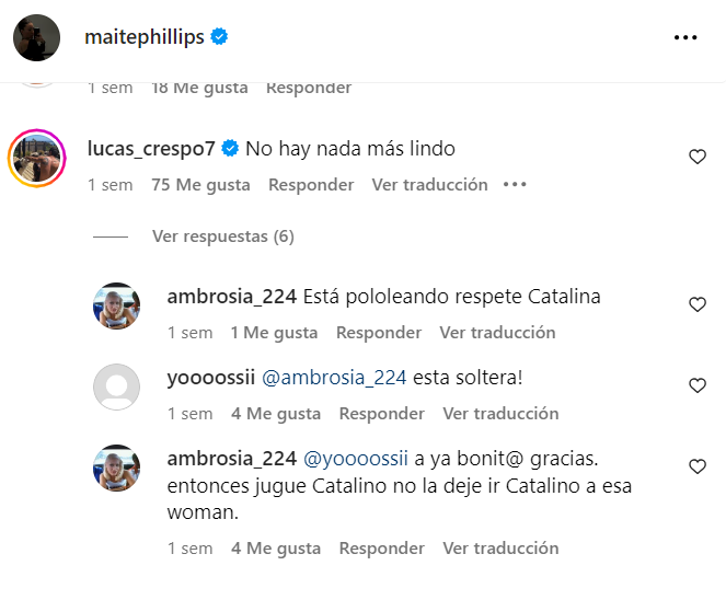 "No hay nada más lindo", escribió Lucas, desatando los comentarios de los cibernautas, quienes algunos afirmaban que Maite estaría en una relación con otra persona, mientras otros aseguran que está soltera.