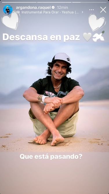 Con el paso de los minutos, sin haberse confirmado aún el deceso del periodista, Raquel decidió bajar el contenido y simplificarlo con una imagen en negro y un corazón blanco.