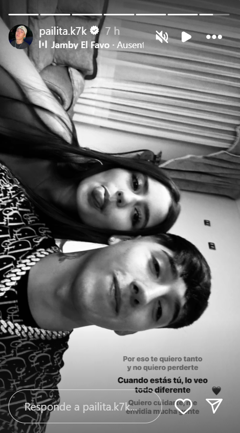 La publicación va acompañada de la canción Ausente de Jamby El Favo, destacando un tierno fragmento de su letra.