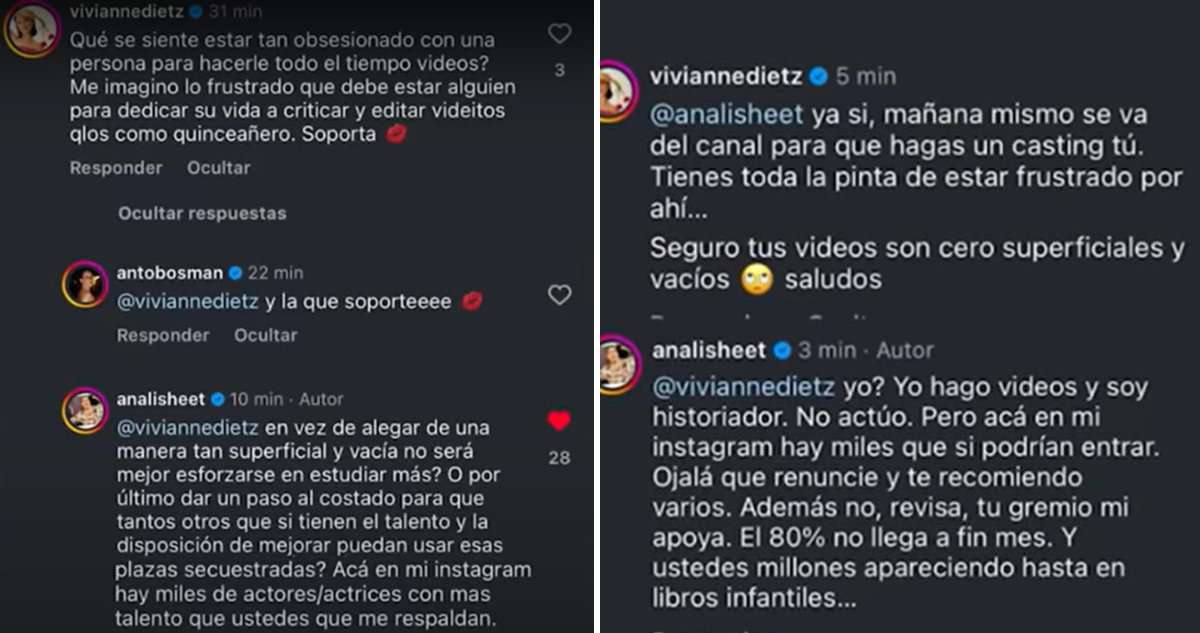 Fue en los comentarios de la publicación que Dietz salió a la defensa del actor y cuestionó: “¿Qué se siente estar tan obsesionado con una persona para hacerle todo el tiempo videos?”.