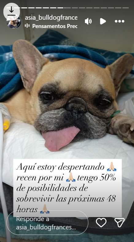 En ese contexto explicó que "mi perrita hace un tiempo se enfermó y a mí me dio una parálisis facial periférica. Esa vez, a Asia le detectaron un tumor dentro del bazo, en el estómago, y en este minuto el tumor se reventó y mi perrita tiene el estómago lleno de sangre".
