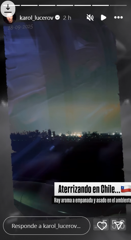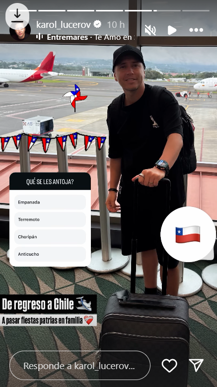 "Aterrizando en Chile. Hay aroma a empanada y asado en el ambiente", concluyó Karol, mientras que Fran Virgilio aún se encuentra en Estados Unidos visitando a parte de su familia para "sanar", según explicó su madre.