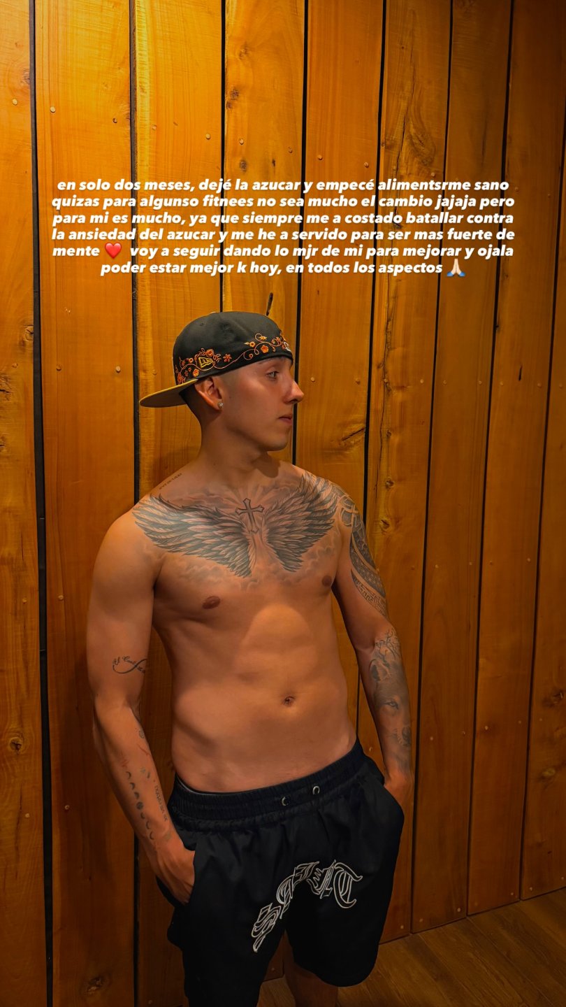 Posteriormente, compartió una foto de su cuerpo actualmente, asegurando que "en solo dos meses, dejé el azúcar y empecé a alimentarme sano, quizás para algunos fitness no sea mucho el cambio jaja".