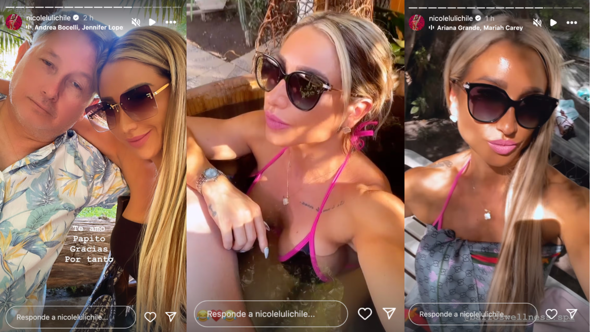 “Te amo papito”, escribió la exchica reality en una de sus historias de Instagram, donde también aprovechó de subir varias imágenes mostrando las comodidades del lugar.