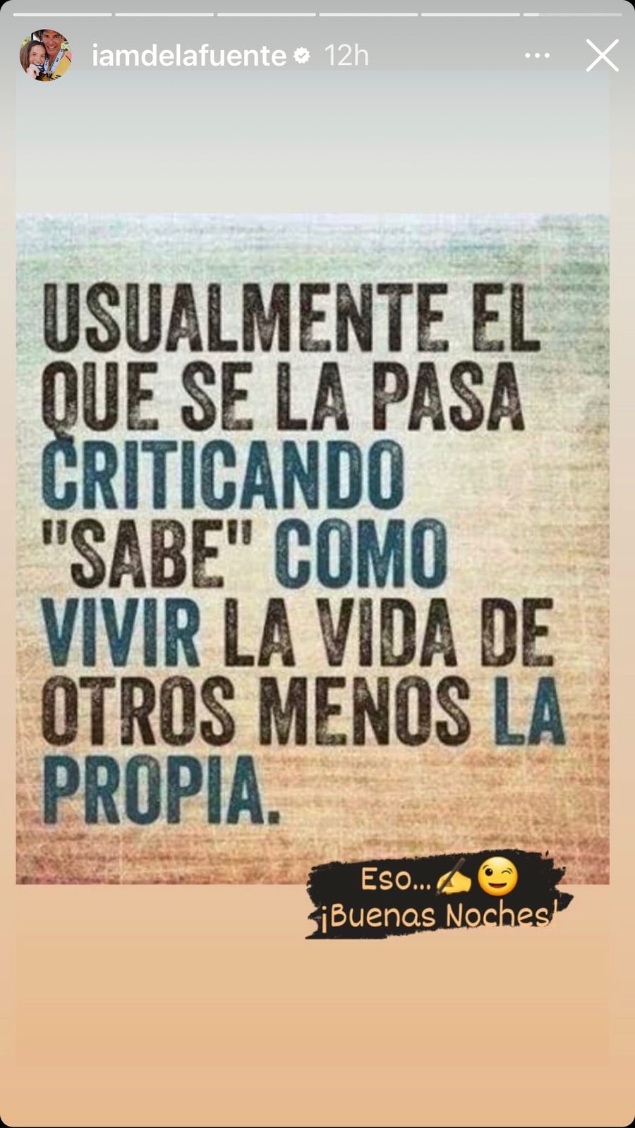 "Usualmente, el que se la pasa criticando 'sabe' cómo vivir la vida de otros, menos la propia", dice la lámina, a la que agregó "eso... ¡Buenas noches!".