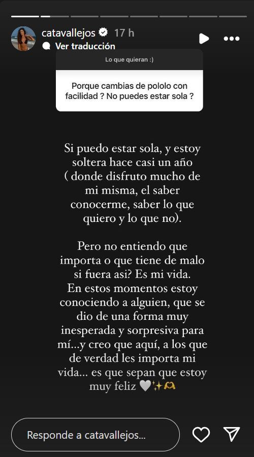 Tras el mensaje, Cata Vallejos utilizó la misma red social para compartir una reflexión sobre el cuestionamiento en acerca de sus relaciones.