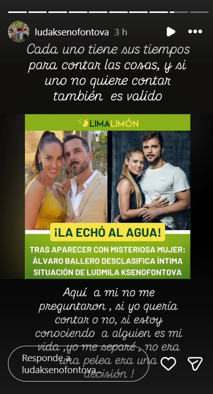 Este martes, Ludmila Ksenofontova volvió a alzar la voz y se refirió a los dichos de Álvaro Ballero, donde señaló que se dio una nueva oportunidad en el amor tras enterarse que la artista circense tenía una nueva pareja.