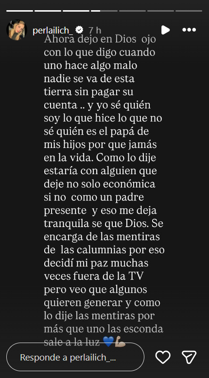 “Encuentro que es una falta de respeto. Yo jamás me he metido en algo que es de un papá, un hijo, yo creo que ellos son adultos. La expareja de Nino y Nino tienen que solucionar sus temas como personas adultas, porque tienen hijos en común”, señaló Ilich en su cuenta de Instagram.