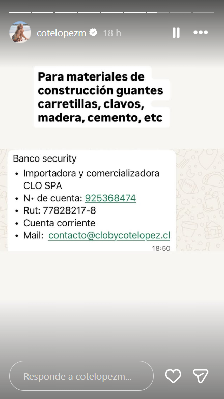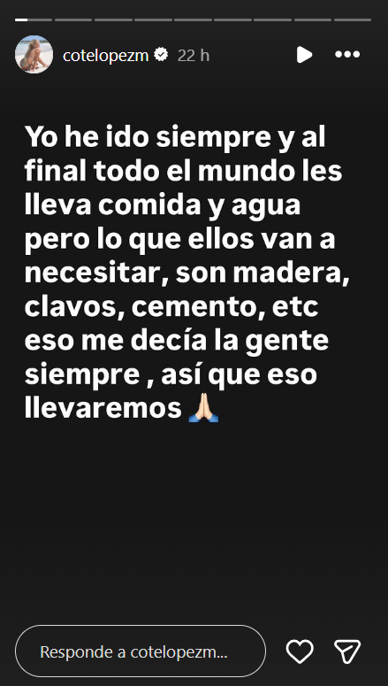 En esa misma línea, agregó: "Ya que ahora irá mucha gente, esperaré para llevar los materiales de construcción en unos días. Obviamente, yo haré mi ayuda, pero si todos aportan, será mucho más grande".