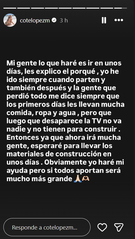 Esto porque, según explicó López en su cuenta de Instagram, esperará a que la emergencia pase y la atención mediática ya no esté tan latente para ayudar en labores de reconstrucción.