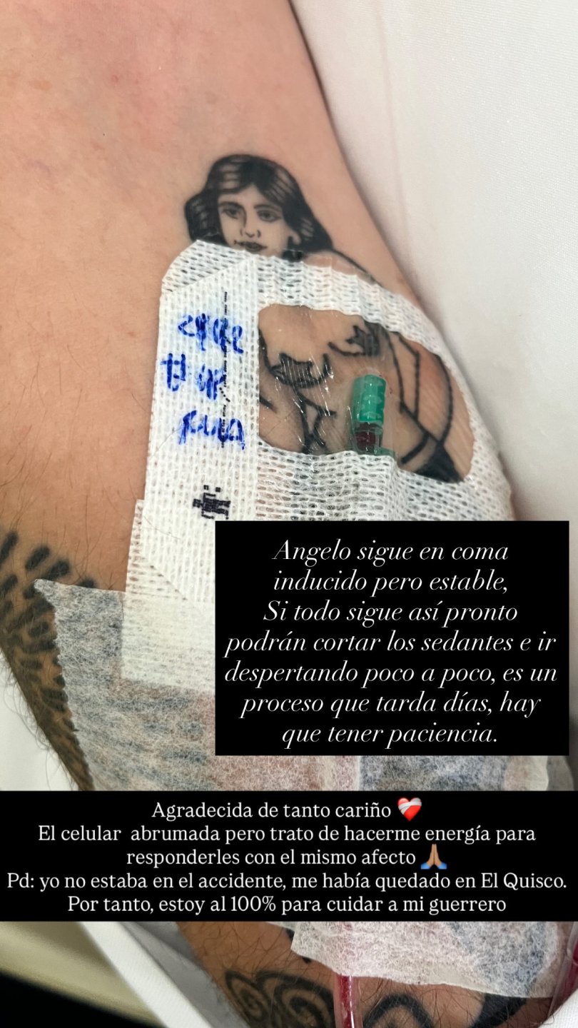 "Angelo sigue en coma inducido pero estable. Si todo sigue así, pronto podrán cortar los sedantes e ir despertando poco a poco", afirmó la mujer en la publicación.