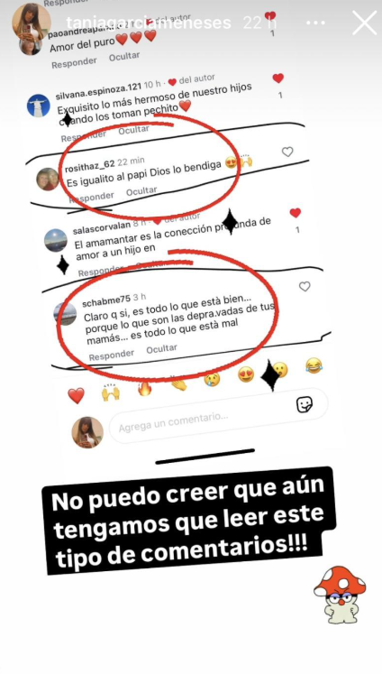 Sin embargo, García recibió comentarios con insultos y cuestionamientos a su rol como madre, su relación con María Jimena Pereyra y otros relacionados a la lactancia.