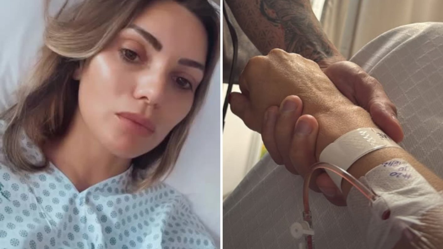 Larraguibel publicó una fotografía en una camilla clínica, con el brazo con una sonda que está siendo sostenido por su pareja, llamando la atención de los internautas.