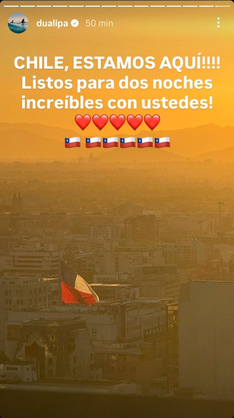 Dua Lipa se presentó en dos fechas en Argentina durante este fin de semana y luego emprendió rumbo a Chile para cumplir con las dos noches en el Estadio Nacional.