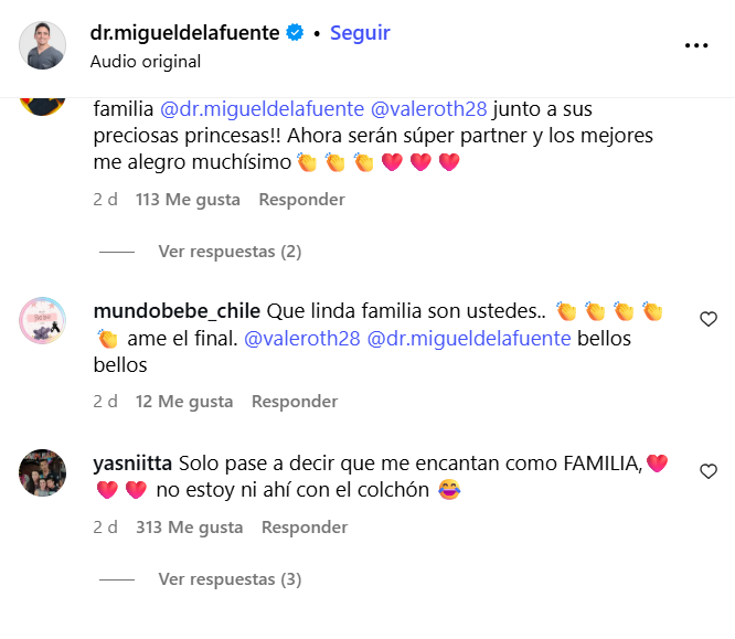 "Que linda familia son ustedes. Ame el final", "Hermosos los de la Fuente Roth", "Yo hace unos días la notaba distinta, un poco más feliz, me alegro que hayan vuelto", "Estoy muy feliz por ellos, son una familia muy bella, su amor les hará pasar todas las barreras".