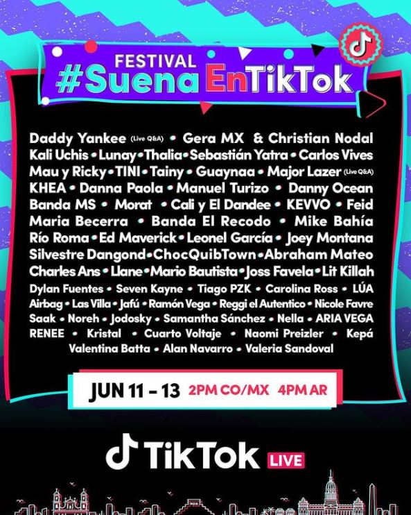 Este viernes comienza el primer festival de TikTok, evento musical que será 100% online y destinado para Latinoamérica.