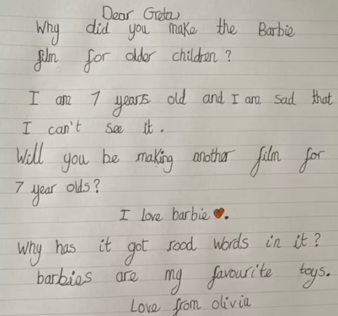 carta dirigida a Greta Gerwing la directora de dicha película, haciéndose rápidamente