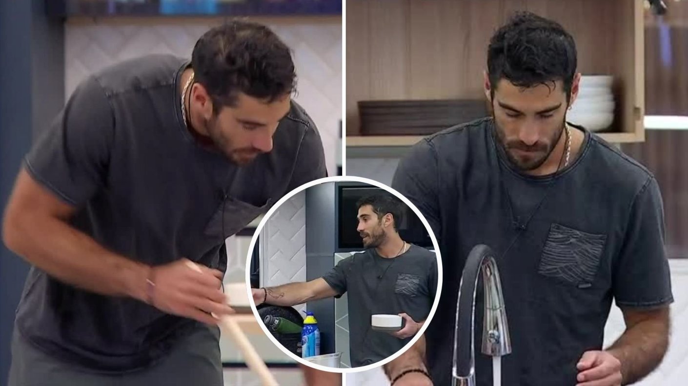 Astorga se levantó temprano y comenzó a limpiar todas las cosas que sus compañeros habían ensuciado tras la fiesta de este viernes. Lavó la loza, barrió, trapeó el piso y guardó comida en el refrigerador mientras todos dormían.