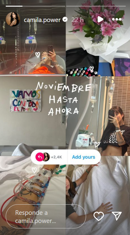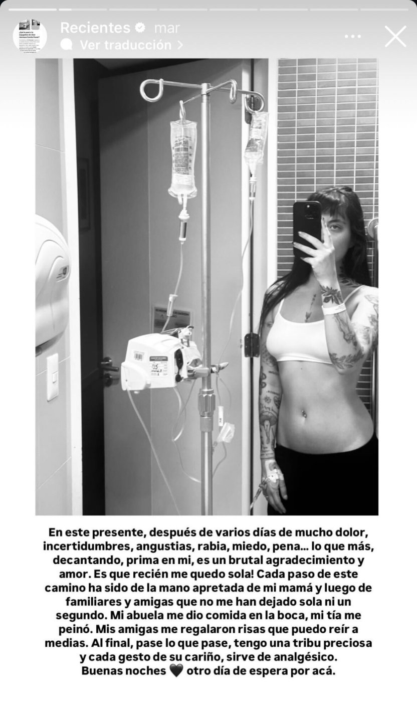 En sus stories de Instagram, la influencer compartió algunas fotos desde su hospitalización.