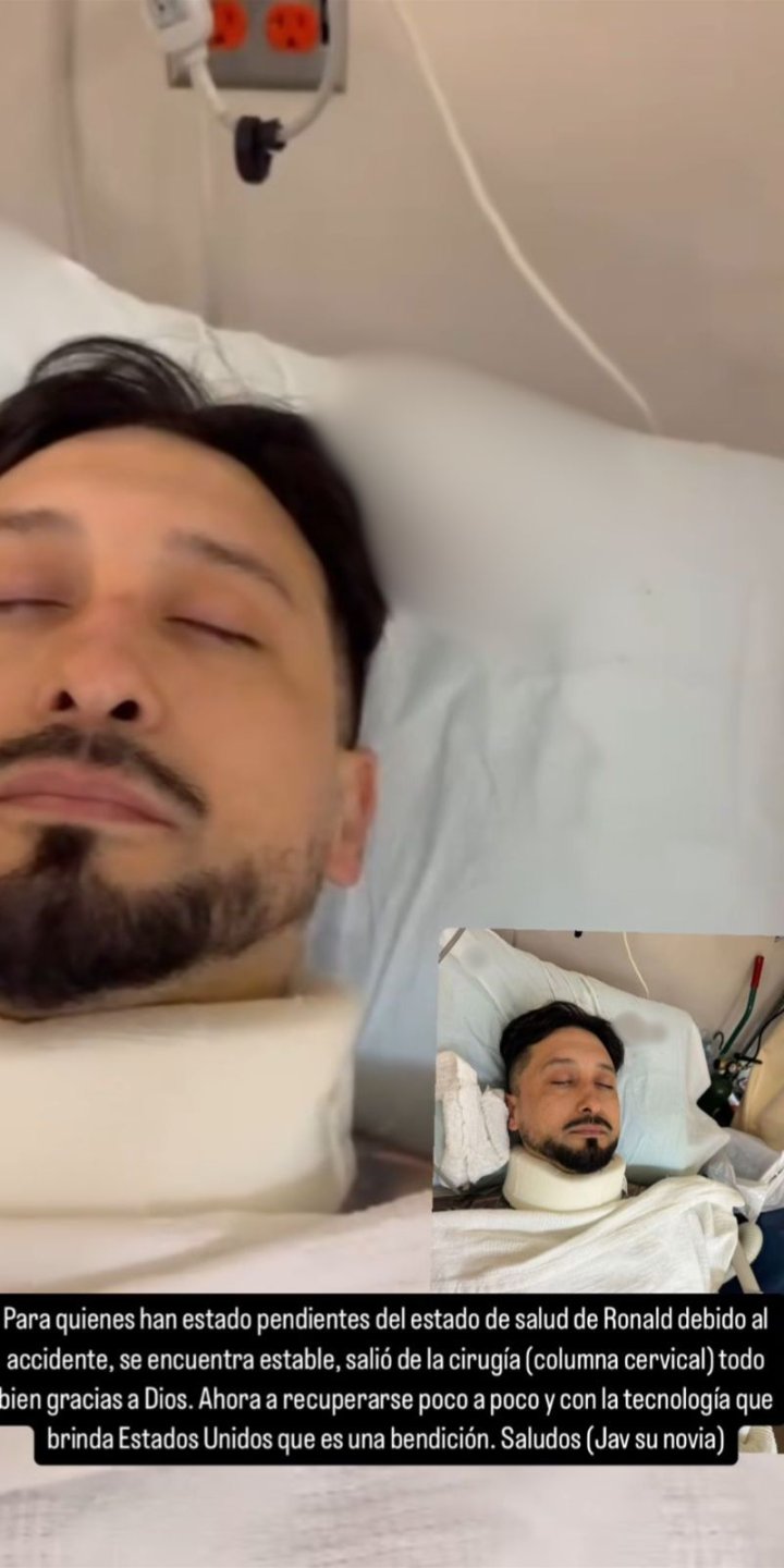 A través de su cuenta de Instagram, Javiera Gutiérrez, la pareja del ex chico Rojo, grabó a Ronald en la camilla del hospital, donde explicó: "Para quienes han estado pendientes del estado de salud de Ronald debido al accidente, se encuentra estable".
