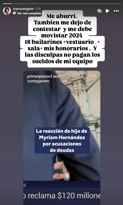 A través de Instagram, la reconocida bailarina y coreógrafa y exparticipante del programa Rojo, Ivana Vargas, aseguró que también le deben dinero por trabajos realizados en 2024.