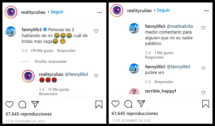 La ex chica reality Fanny Cuevas se desahogó y respondió comentarios en Instagram que la aludían, precisamente, por sus participaciones pasadas en ese tipo de programas.