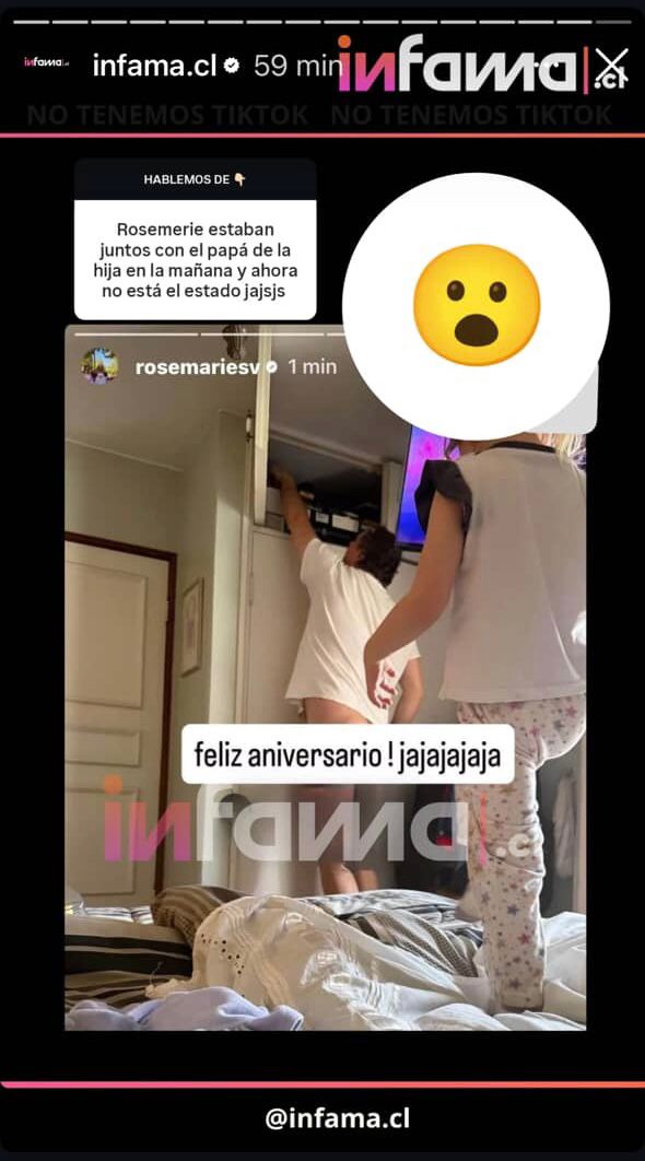 Al respecto, Dietz publicó una historia en su cuenta de Instagram donde se le ve acostada en compañía de su hija, mientras que en el fondo aparece un hombre, quien sería González, buscando algo en el interior de un closet.