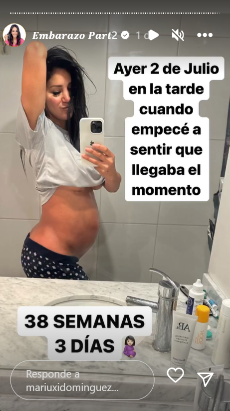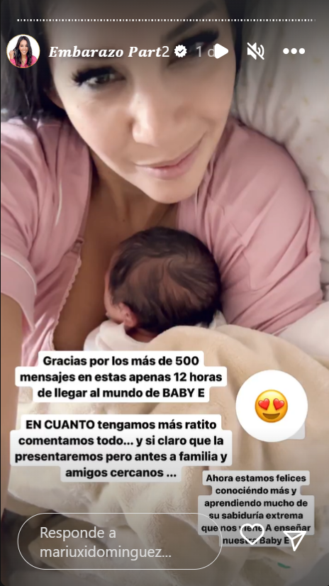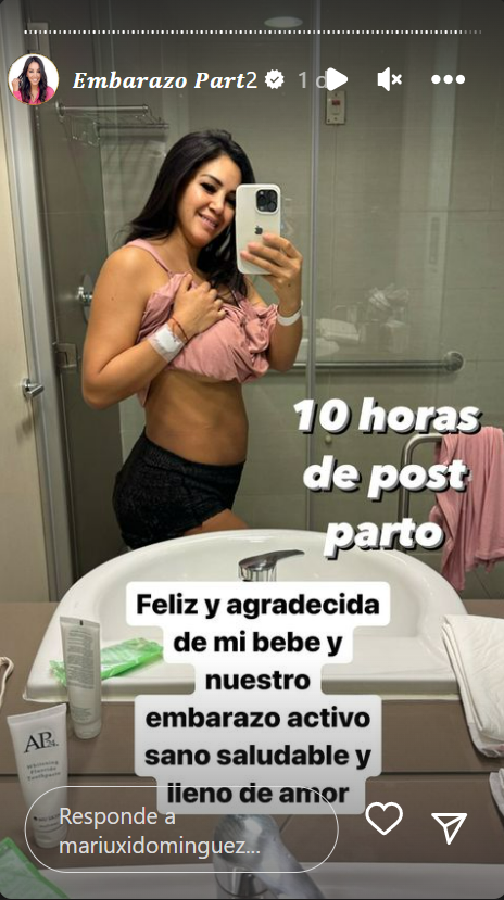 "Feliz y agradecida de mi bebé y nuestro embarazo activo, sano, saludable y lleno de amor", dijo Domínguez en una historia, haciendo alusión a su constante rutina deportiva durante los 9 meses de gestación.