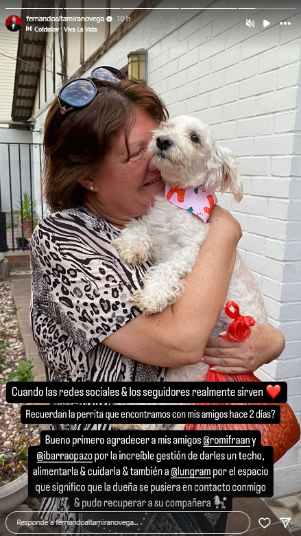 "La señora me agradeció mucho la gestión de haber mostrado a Kira en mis redes, que mis amigos la hayan tratado tan bien y que le dieran un techo", continuó.