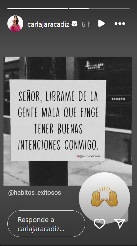 “Señor, líbrame de la gente mala que finge tener buenas intenciones conmigo”, expresaba el escrito compartido por Jara.