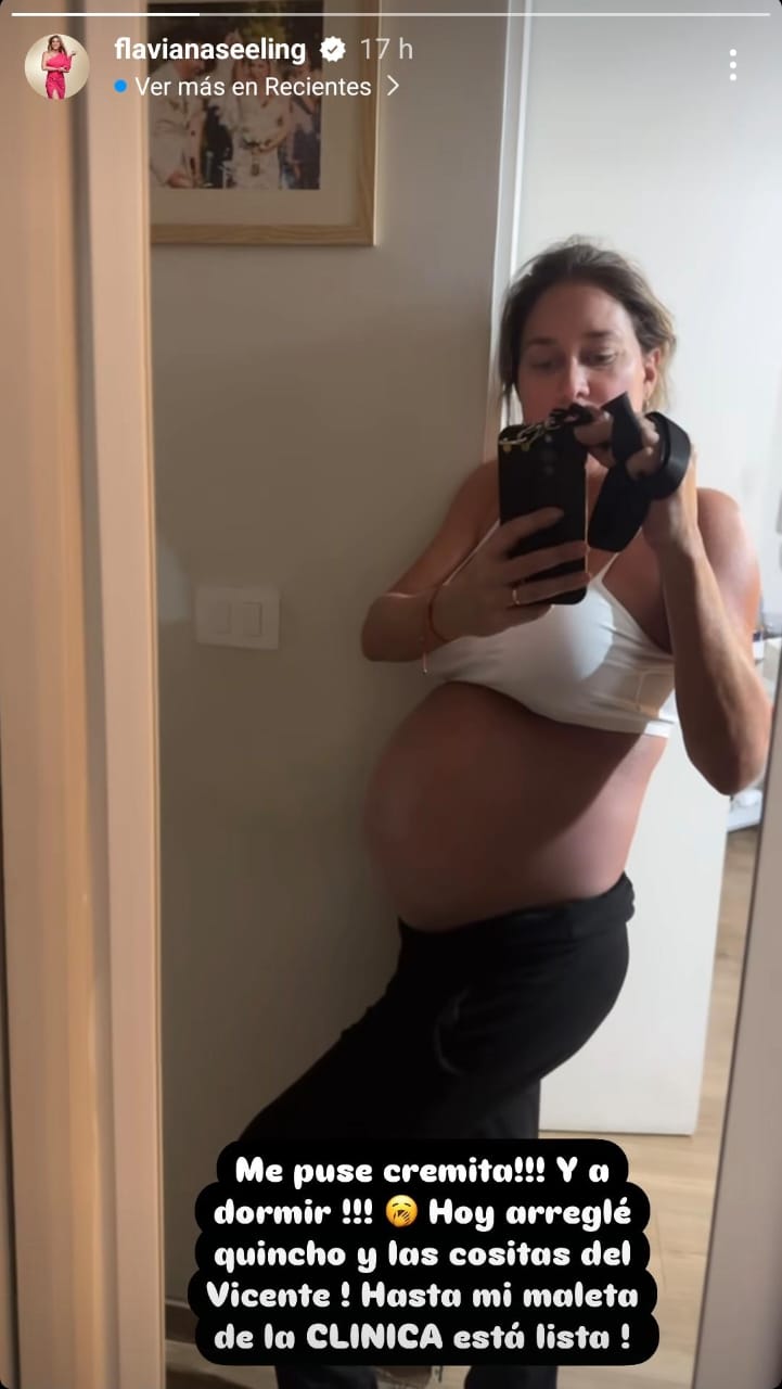 "Me puse cremita y a dormir", reveló en primera instancia Flaviana Seeling. Además, también confirmó ante sus seguidores cuál será el nombre de su bebé.