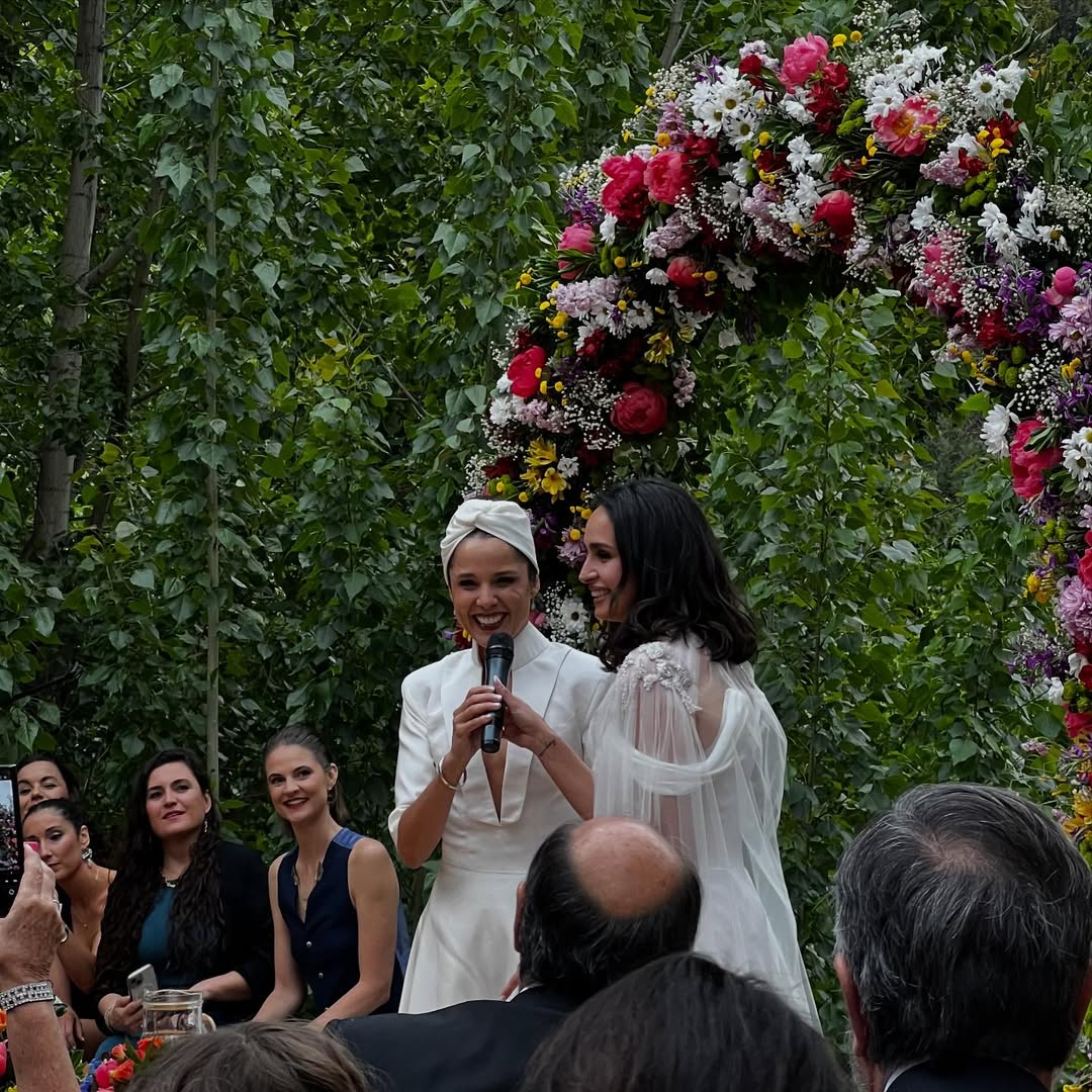 Otra de las asistentes que compartió imágenes fue la actriz Begoña Basauri, quien subió a Instagram una romántica foto de las novias.