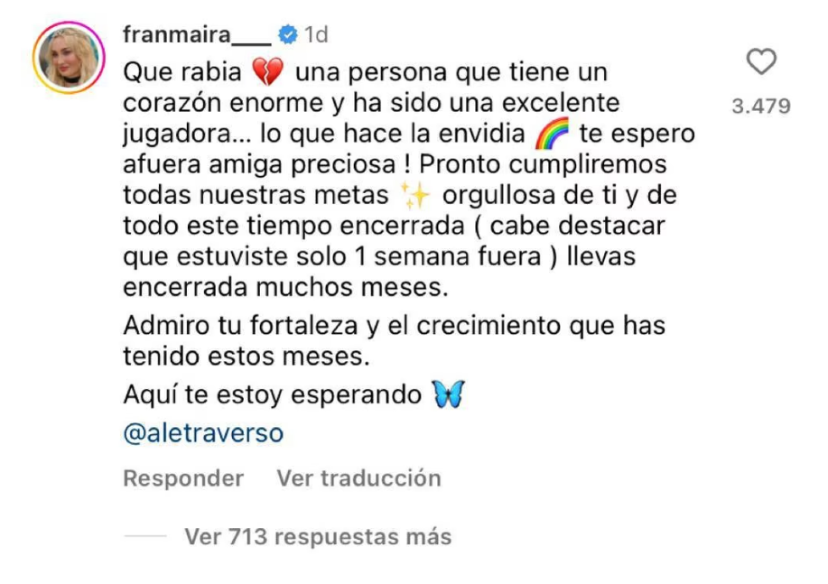 defendiera a Alessia Traverso de las críticas que recibió a través de