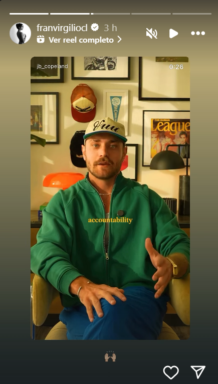 La joven compartió en sus historias de Instagram un video del influencer JB Copeland, en donde habla sobre aquellos que no son capaces de asumir sus culpas y responsabilidades.