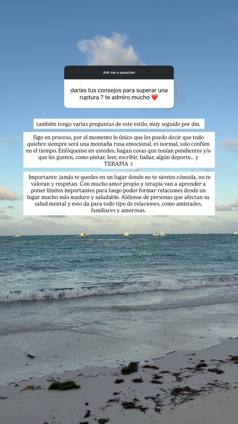"Sigo en proceso. Por el momento lo único que les puedo decir es que todo quiebre siempre será una montaña rusa emocional, es normal, solo confíen en el tiempo", partió diciendo.