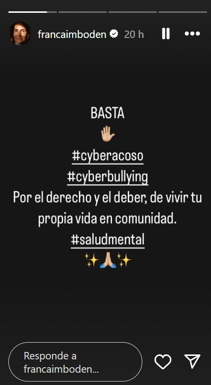 A través de su Instagram, la intérprete compartió una storie en la que hizo un llamado a terminar con estas conductas tras la denuncia realizada por su hija, María Trinidad Garcés.