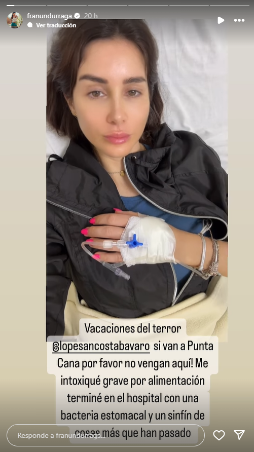 La modelo Francisca Undurraga despertó preocupación entre sus seguidores al publicar un registro desde un hospital en Punta Cana, mostrándose recostada en la camilla y con suero conectado a su mano.