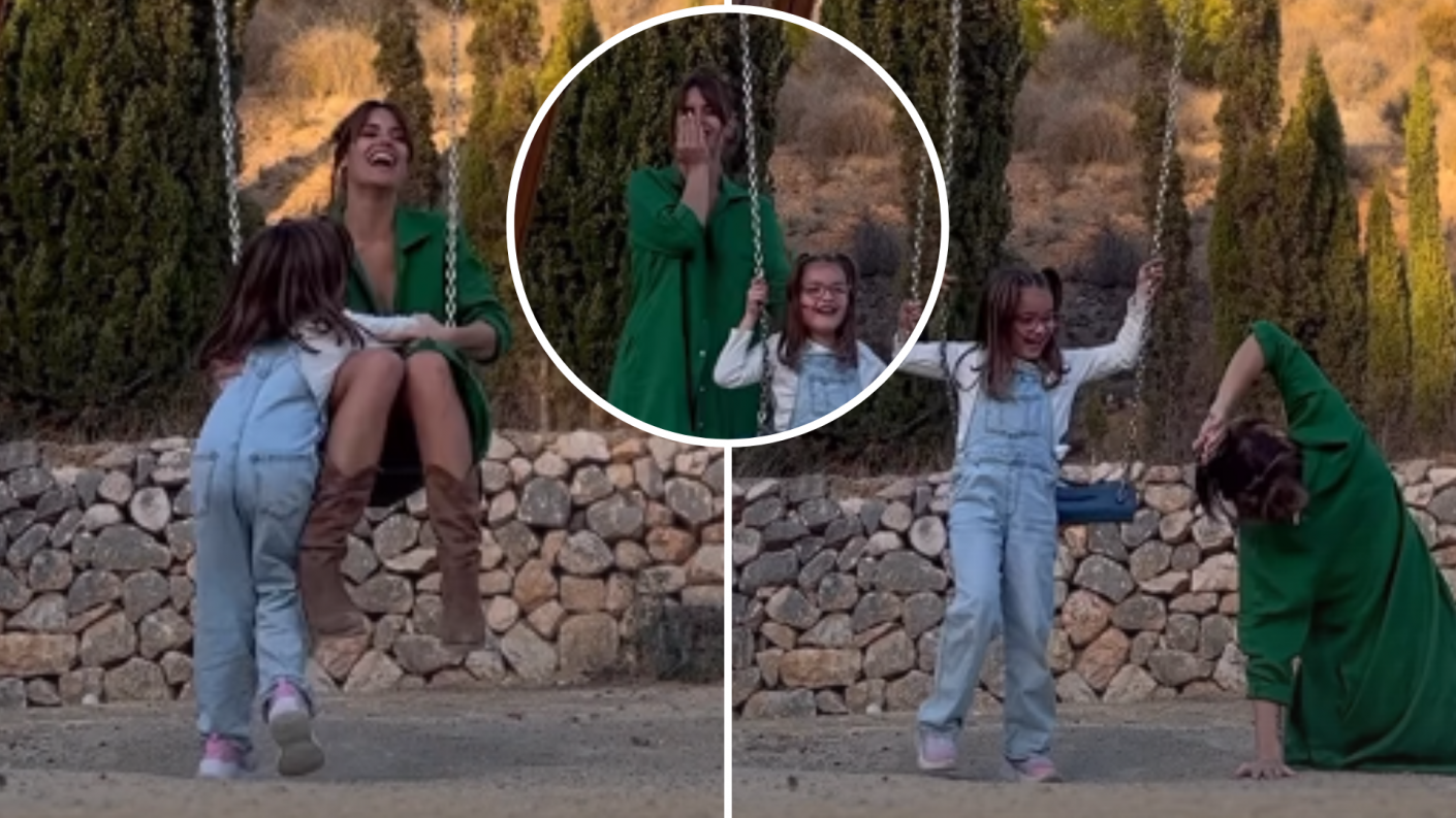 La modelo española pasó una divertida tarde junto a su hija, en la que compitieron por unos columpios entre risas y juegos, momento en el que se provocó un curioso accidente.